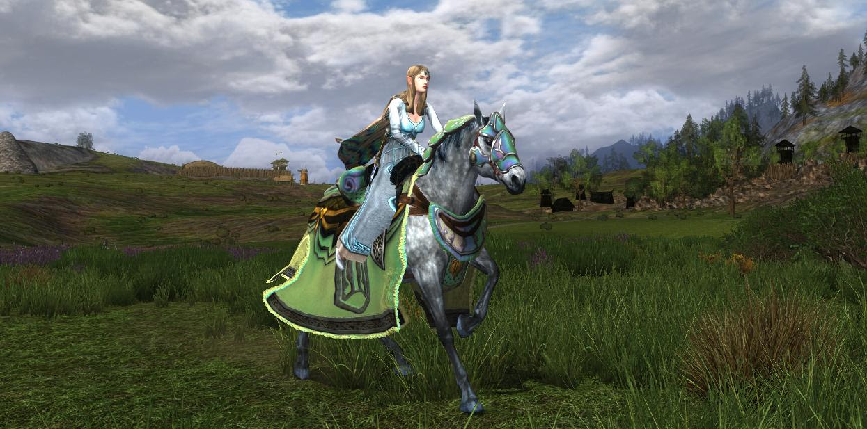 Although I'm still a bit disappointed by not having done all challenges on level, the amazing Steed of Many Colours made up for a lot. I did have to do the Foundry T1 for it after all the raid heroism, but it was worth it: this elder brother of the Prized Isengard War-steed wears a drapery that shifts colour! From blue to green, to yellow, to rose, all soft colours. Do put your graphics above medium, though, otherwise it will just show up white.